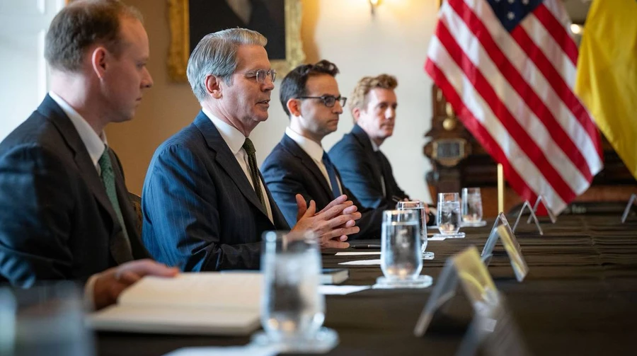 图片来源:尤利娅・斯维里登科的 Telegram 账号 美国财政部长斯科特・贝森特在华盛顿与乌克兰总理尤利娅・斯维里登科会面时承诺,美国准备与其他七国集团成员国开展合作,以加大对俄罗斯的施压力度。 消息来源:美国财政部、斯维里登科社交媒体账号。