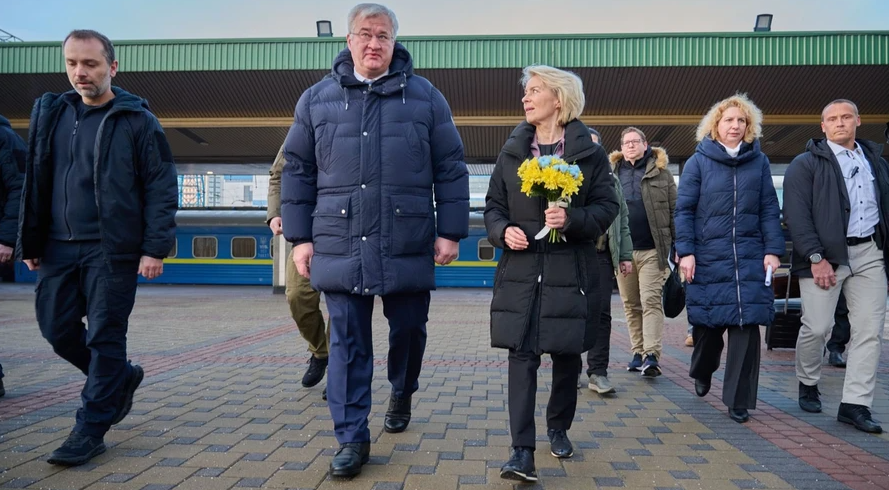 | 欧盟委员会主席乌尔苏拉・冯德莱恩与欧洲理事会主席安东尼奥・科斯塔,于2 月 24 日清晨抵达基辅。